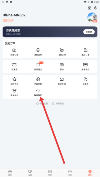 2、在進(jìn)入到我的主頁時(shí),找到聯(lián)系我們按鈕,點(diǎn)擊按鈕即可進(jìn)入聯(lián)系客服。