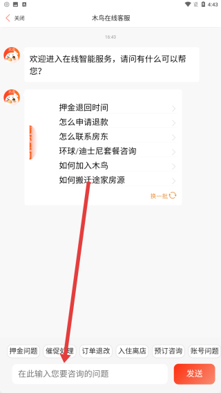 3、在木鳥在線客服頁面中,可以點(diǎn)擊下方輸入框,輸入想要咨詢客服的問題。