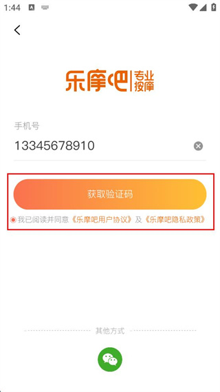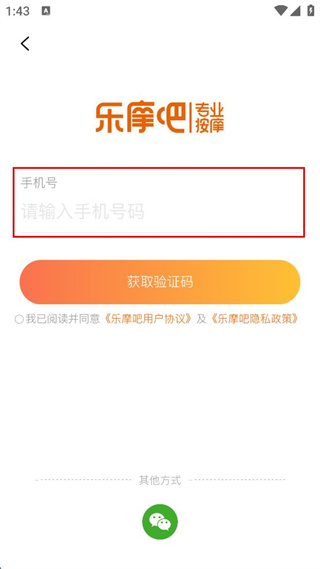 4、輸入收到的驗證碼,完成登錄即可使用樂摩吧APP相關(guān)功能。