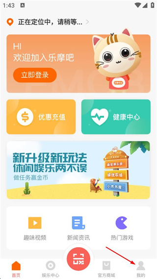 1、打開樂摩吧APP,點擊右下角我的,進入個人登錄頁面。