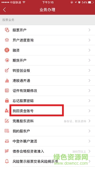 進(jìn)入“業(yè)務(wù)辦理”界面,點(diǎn)擊【找回資金帳戶】
