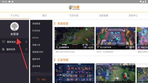 1、啟動斗魚APP,在個人中心頁面內點擊未登錄的區(qū)域。