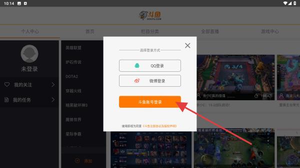 2、彈出登錄方式,選擇并點擊斗魚賬號登錄。