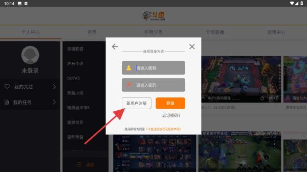 3、在界面內,再次點擊新用戶注冊的功能按鈕。