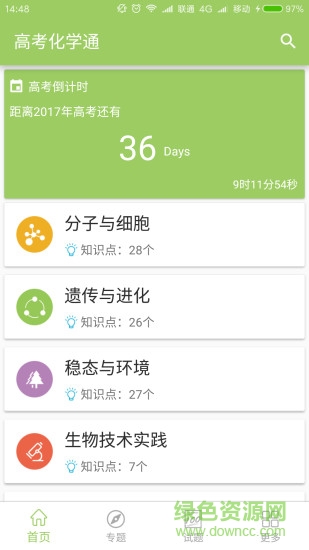 高考生物通包含高考生物科目下的所有高考知識點(diǎn)詳解,具體的有分子與細(xì)胞、遺傳與進(jìn)化、穩(wěn)態(tài)與環(huán)境、生物技術(shù)實(shí)踐、現(xiàn)代生物科技專題等幾個(gè)大的模塊