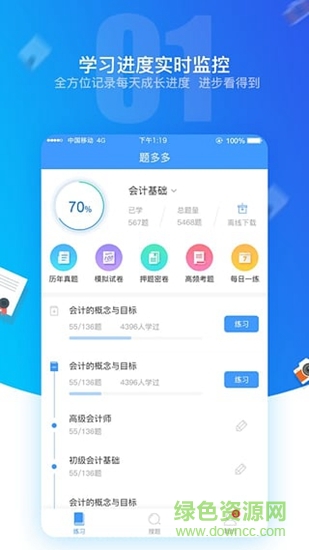 題多多app是一款綜合性的考試刷題軟件,集合公考、財(cái)務(wù)、建筑、醫(yī)藥等各種職業(yè)資格證為一體,海量題庫分級練習(xí)輕松掌握知識,歷年考試全面覆蓋,在線??颊鎸?shí)水平清晰知曉,歡迎來綠色資源網(wǎng)下載1