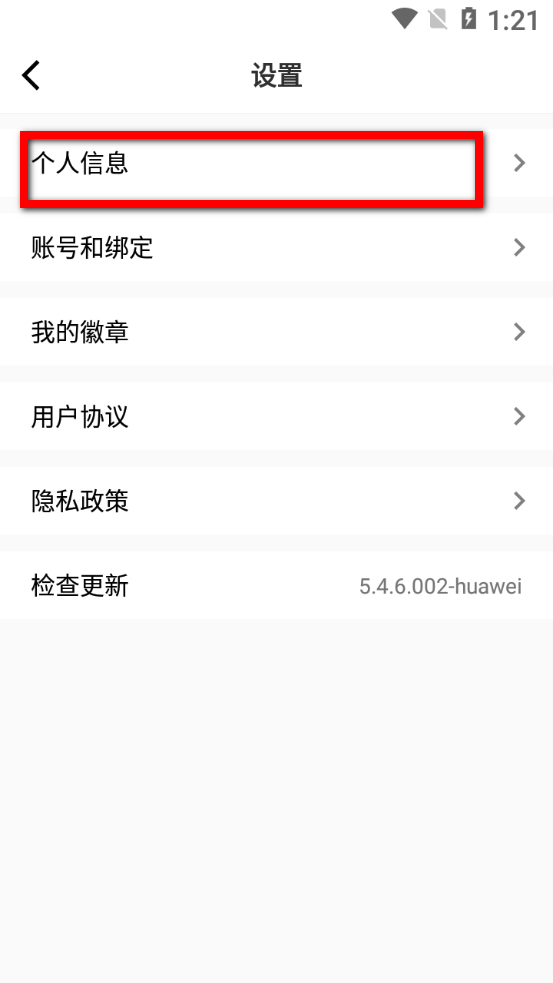3、在設(shè)置頁面,點擊個人信息選項,進入登錄相關(guān)界面。