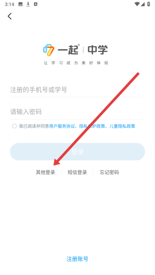 1、在一起中學(xué)登錄頁(yè)面,可以點(diǎn)擊下方其他登錄按鈕,使用其他平臺(tái)登錄。