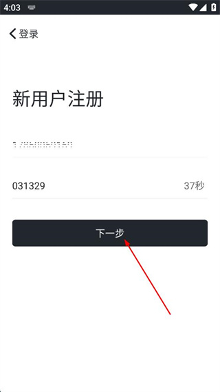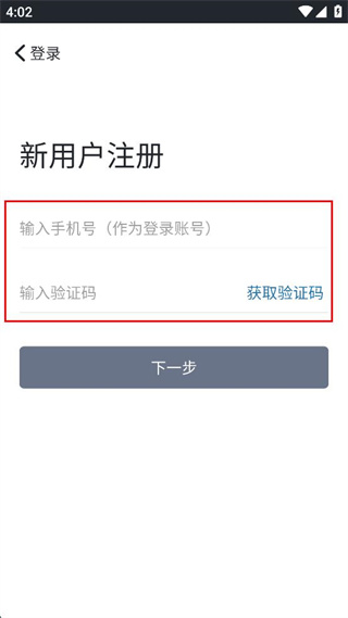 2、在新用戶注冊頁面輸入手機號,點擊獲取驗證碼后填入收到的驗證碼內(nèi)容。