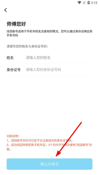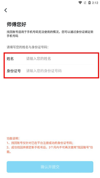 3、填寫完成后,點(diǎn)擊確認(rèn)并提交,按照提示完成賬號找回操作。