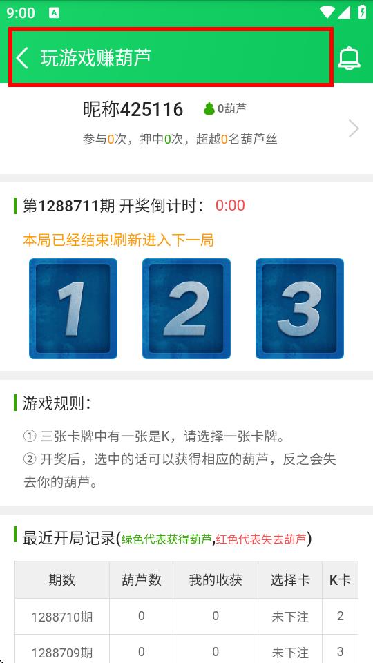 3、進入后參與游戲,開獎后若選中可獲得相應葫蘆,按此規(guī)則賺取葫蘆。