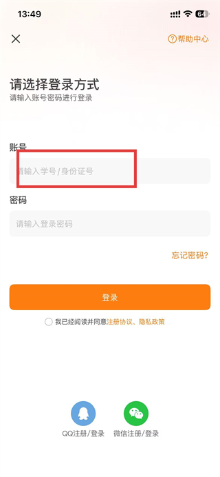 4、接著我們就可以通過輸入自己的學號和賬號密碼進行登錄了,只有在校學生們才能登錄哦。