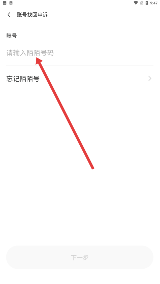 3、在賬號(hào)找回申訴頁(yè)面的輸入框填寫(xiě)陌陌號(hào)碼,為賬號(hào)找回申訴的下一步操作做準(zhǔn)備。