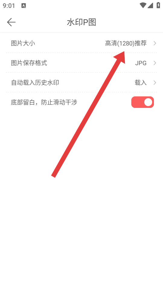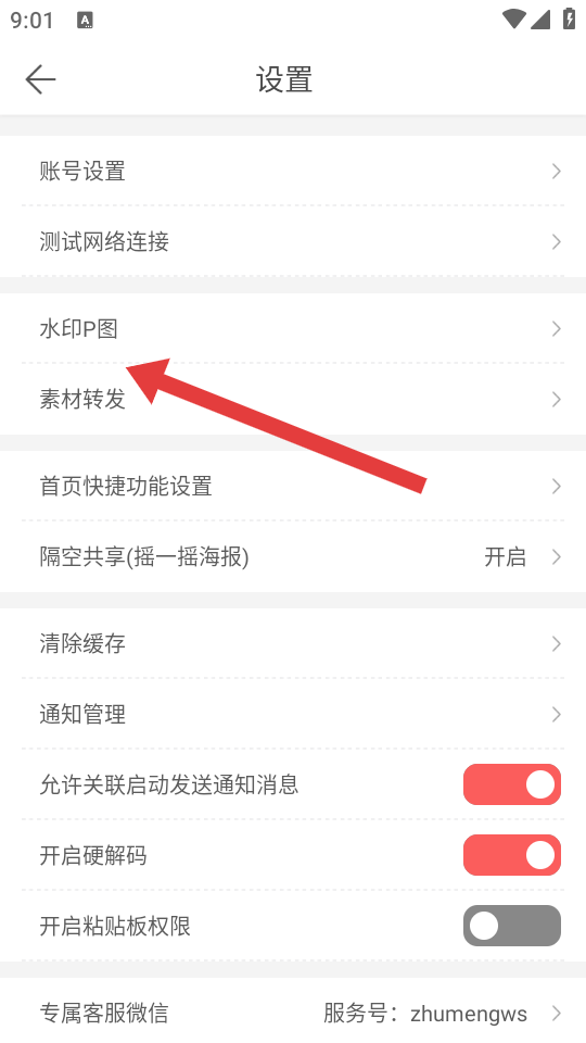 2、在設(shè)置的界面中,點擊水印P圖選項,進(jìn)入水印P圖設(shè)置的頁面。
