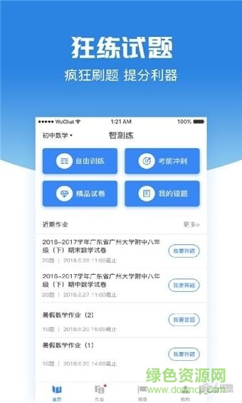 學(xué)生使用智測練app,可以自由訓(xùn)練,考前沖刺,作答作答,系統(tǒng)自動(dòng)收集錯(cuò)題,讓學(xué)生可以錯(cuò)題重做,大大提高學(xué)習(xí)成績。