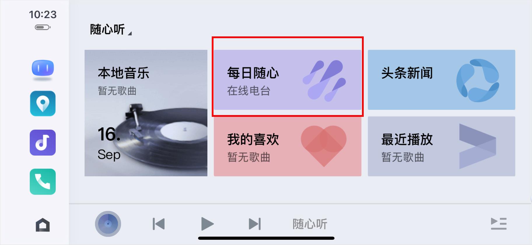 2、進(jìn)入隨心聽(tīng)界面,選擇每日隨心在線電臺(tái)選項(xiàng)。