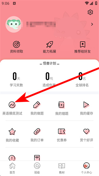 2、在個人中心,點擊英語摸底測試,進入測試準備的頁面。