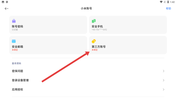 2、在進(jìn)入到賬號(hào)設(shè)置頁(yè)面中可以點(diǎn)擊第三方賬號(hào)按鈕,開(kāi)啟綁定流程。