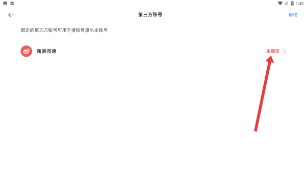 3、在第三方賬號(hào)頁(yè)面里,可以選擇點(diǎn)擊綁定新浪微博賬號(hào)。