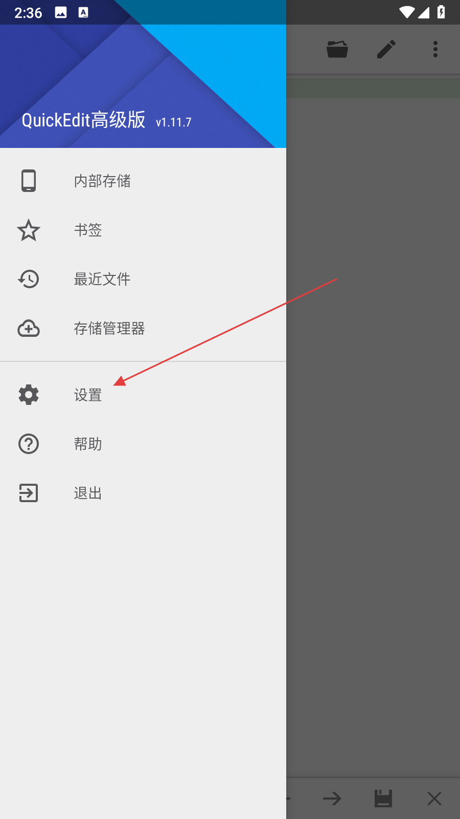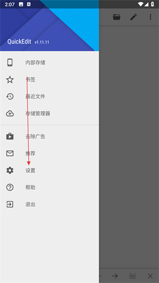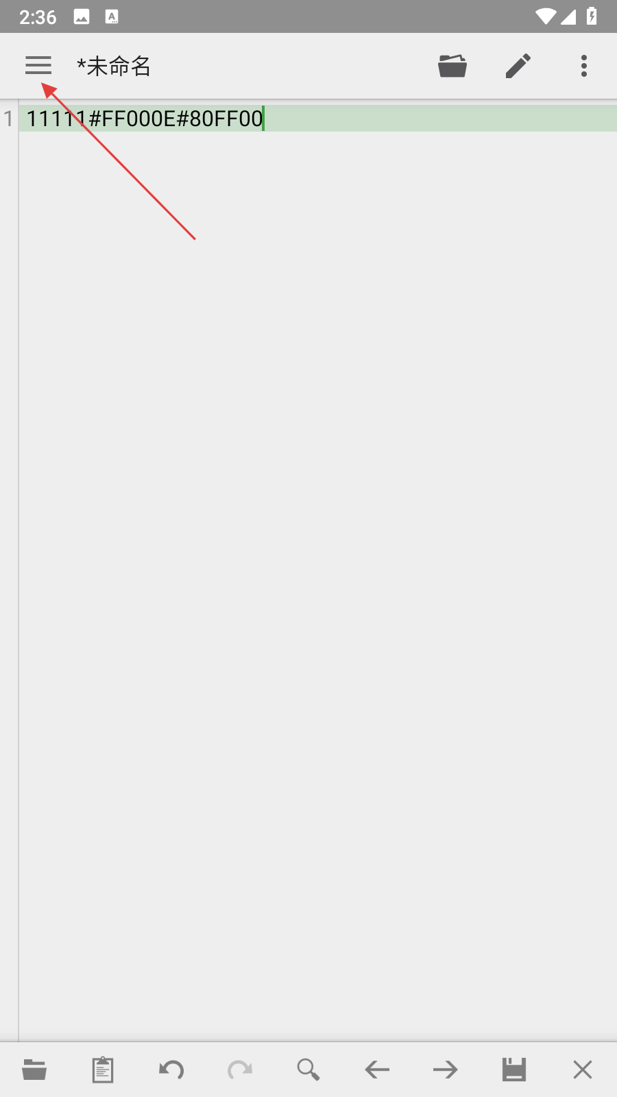 1、打開(kāi)QuickEdit應(yīng)用,點(diǎn)擊界面左上角三條橫線的菜單按鈕。