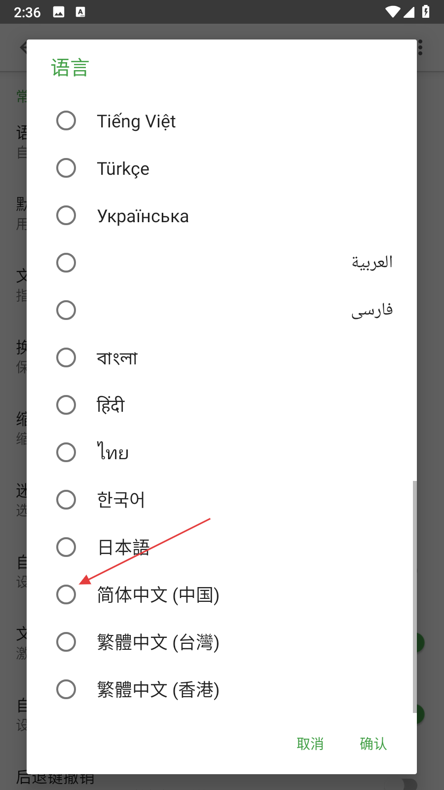 4、語(yǔ)言選擇頁(yè)面中,找到簡(jiǎn)體中文選項(xiàng),點(diǎn)擊語(yǔ)言選擇頁(yè)面右下角的確認(rèn)按鈕。