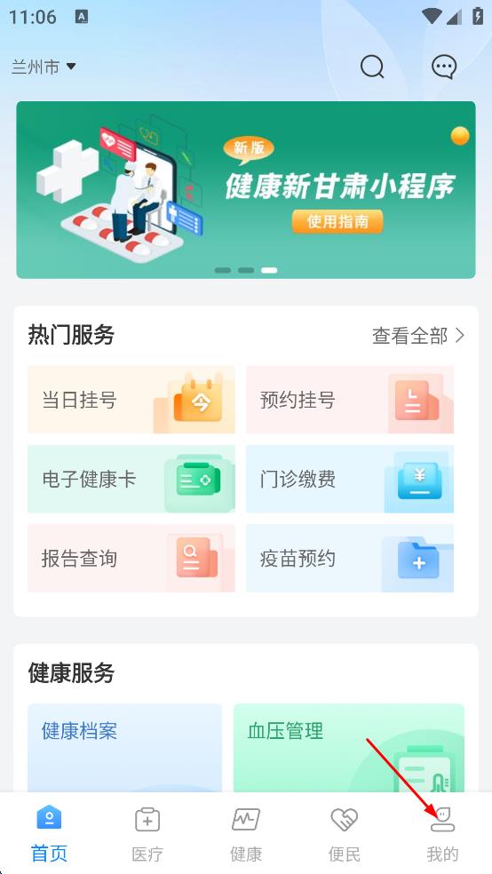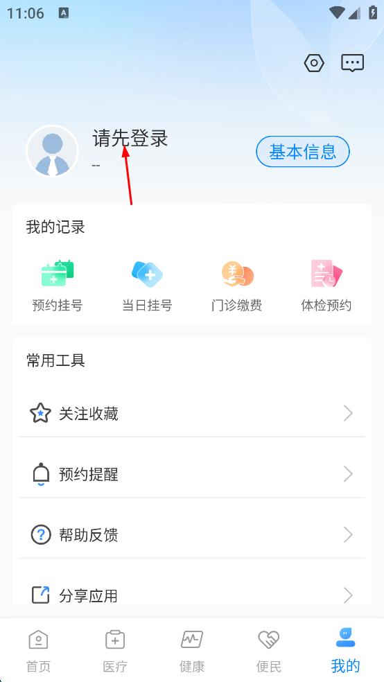 1、打開健康甘肅APP,進入首頁后,點擊右下角的“我的”選項,進入個人頁面,頁面顯示“請先登錄”。