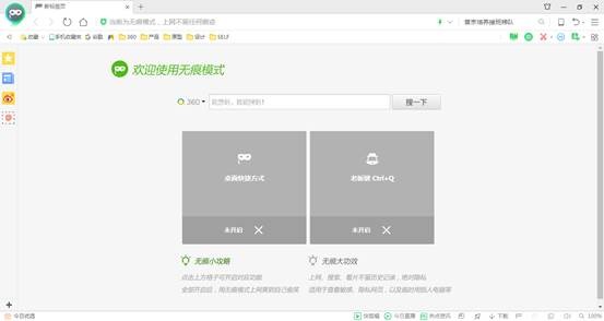 無(wú)痕(小號(hào))窗口將不會(huì)記錄任何瀏覽痕跡,如:網(wǎng)頁(yè)瀏覽歷史、Cookies等,但會(huì)保留您下載的文件或添加的收藏。當(dāng)您在公用電腦上上網(wǎng)或者不愿意被人看到瀏覽記錄時(shí),您就可以使用無(wú)痕(小號(hào))模式。