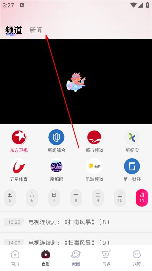 2、進入直播頁面后,點擊上方的新聞欄目。