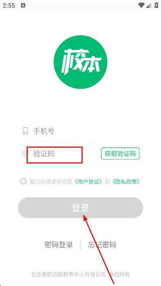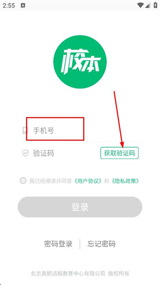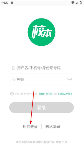1、打開校本app,點擊短信登錄,進入短信登錄頁面。