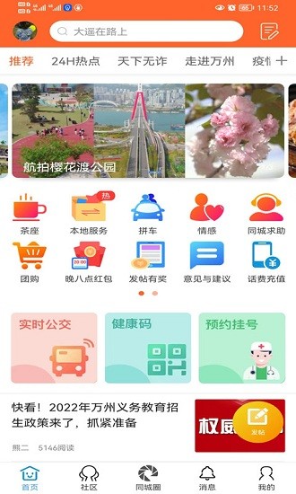 萬州通是萬州的本地應(yīng)用,萬州同城用戶在萬州通查看萬州本地新聞資訊、享受萬州本地團(tuán)購優(yōu)惠、分享萬州本地美食、查詢?nèi)f州公交、車輛違章、萬州天氣,下載萬州通幫你快速找到萬州共同興趣愛好的圈子。