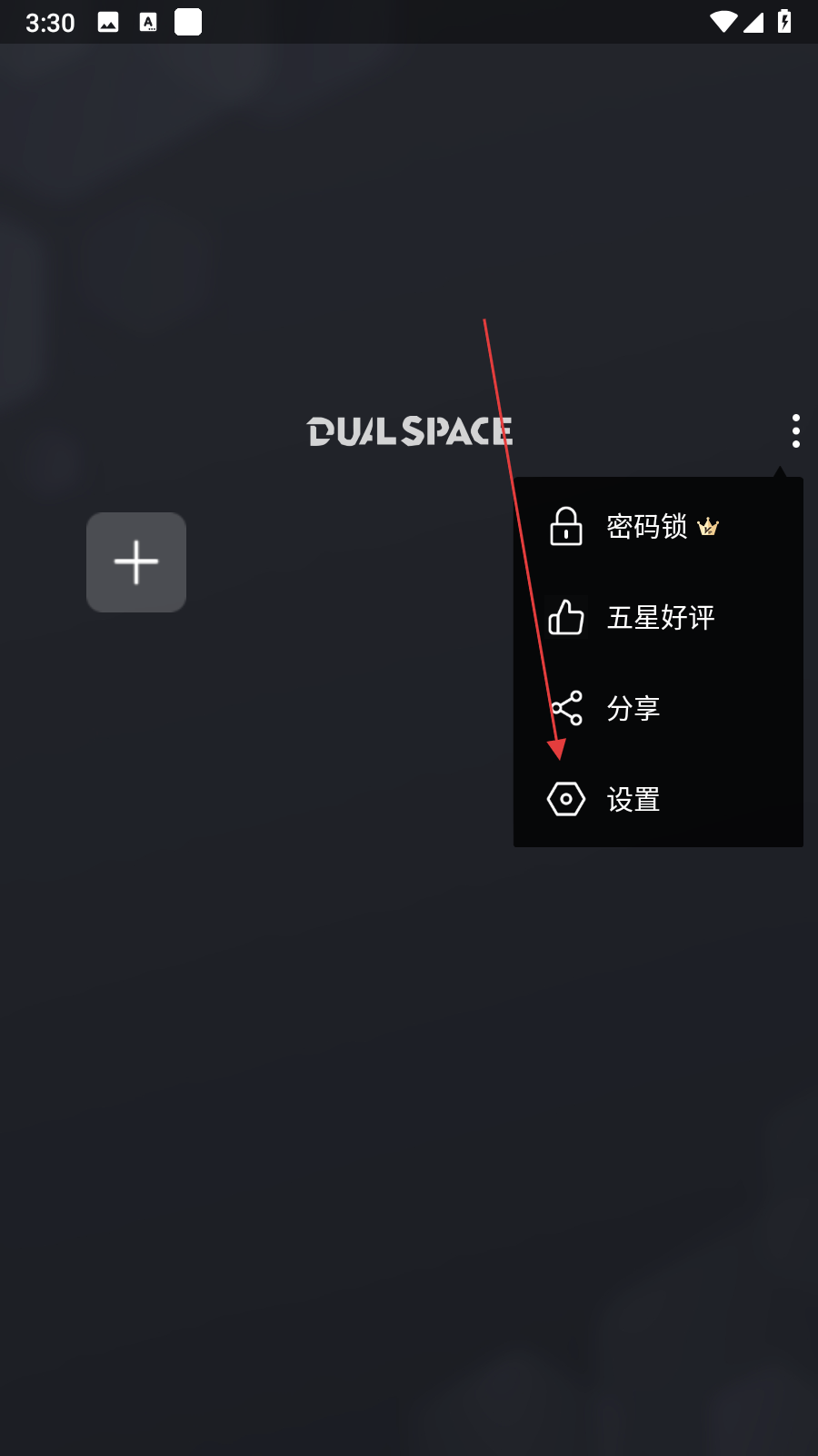 1、打開(kāi)DualSpace應(yīng)用,點(diǎn)擊界面右上角的三點(diǎn)形狀更多操作按鈕。