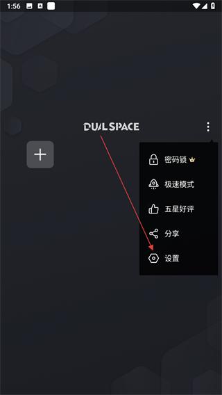 1、打開(kāi)DualSpace APP,點(diǎn)擊三點(diǎn)菜單。