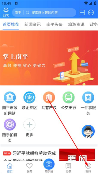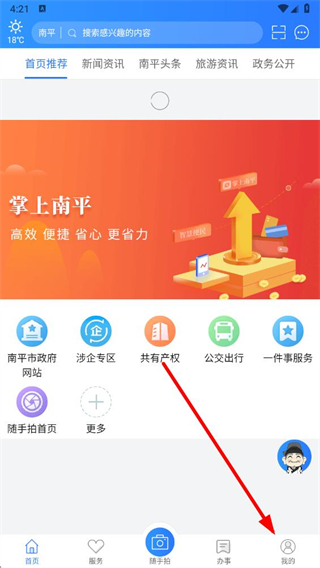 1、打開掌上南平APP后,在底部導(dǎo)航欄找到我的選項(xiàng)并點(diǎn)擊。