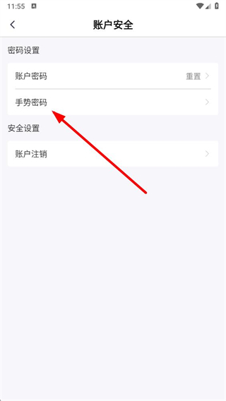 3、在賬戶安全頁面,點(diǎn)擊手勢密碼選項(xiàng),進(jìn)入手勢密碼設(shè)置頁面。