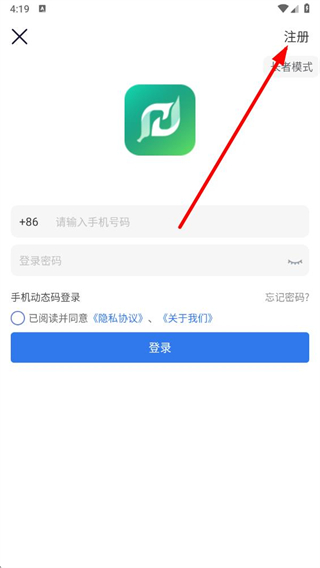 3、在登錄頁面右上角,找到注冊選項(xiàng)并點(diǎn)擊,進(jìn)入賬號注冊的信息填寫界面。