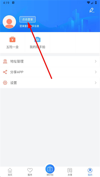 1、進(jìn)入掌上南平,點(diǎn)擊底部導(dǎo)航欄中我的選項(xiàng)。