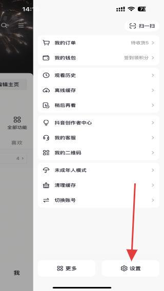 2、點擊后展開菜單欄,點擊下方設(shè)置的功能按鈕。