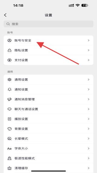 3、進入設(shè)置頁面后,用戶需找到并點擊賬號與安全的選項。
