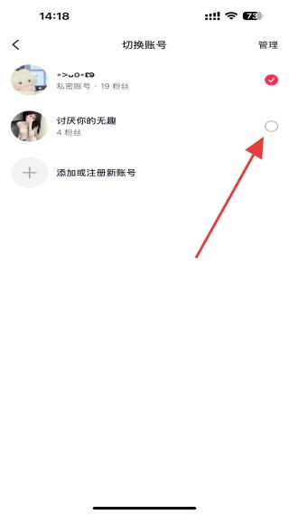 4、在切換賬號的頁面內(nèi),若已有其他賬號添加過,直接點擊目標(biāo)賬號即可切換。
