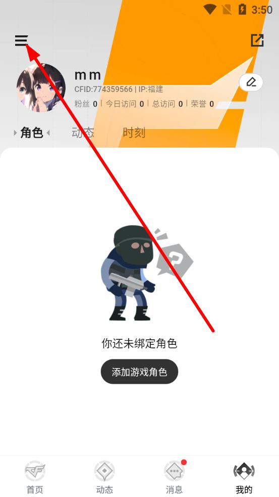 1、打開掌上穿越火線App,點(diǎn)擊底部導(dǎo)航欄的我的進(jìn)入個(gè)人界面。