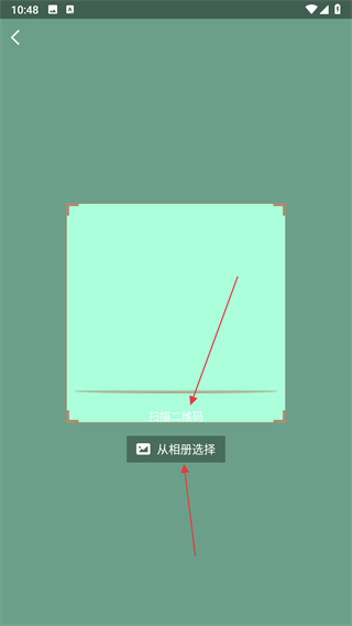 3、進(jìn)入掃描界面后,可直接用相機(jī)對(duì)準(zhǔn)二維碼進(jìn)行掃描二維碼操作,也能點(diǎn)擊從相冊(cè)選擇按鈕。