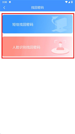 2、在找回密碼頁(yè)面選擇短信找回密碼或人臉識(shí)別找回密碼方式。