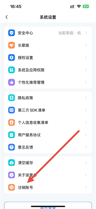 3、在系統(tǒng)設(shè)置頁(yè)面點(diǎn)擊注銷賬號(hào)選項(xiàng),進(jìn)入賬號(hào)注銷確認(rèn)頁(yè)面。