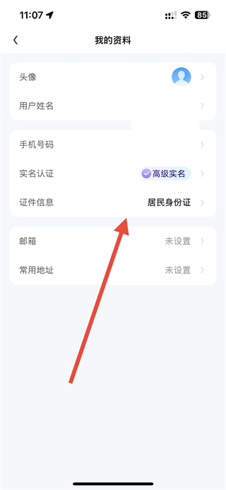3、在我的資料頁(yè)面,可對(duì)頭像、用戶姓名、手機(jī)號(hào)碼、證件信息、郵箱、常用地址等個(gè)人信息進(jìn)行修改。