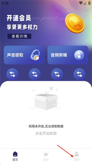 1、打開聲音提取器軟件,點(diǎn)擊右下角我的。