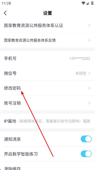3、在設(shè)置頁面,點(diǎn)擊修改密碼選項(xiàng),進(jìn)入修改密碼頁面。