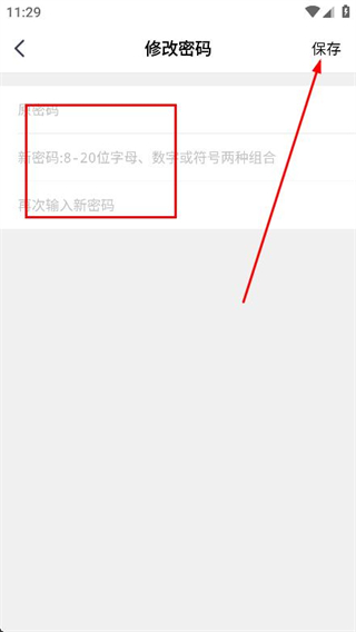 4、根據(jù)要求設(shè)置密碼,點(diǎn)擊保存按鈕,即可完成密碼修改。