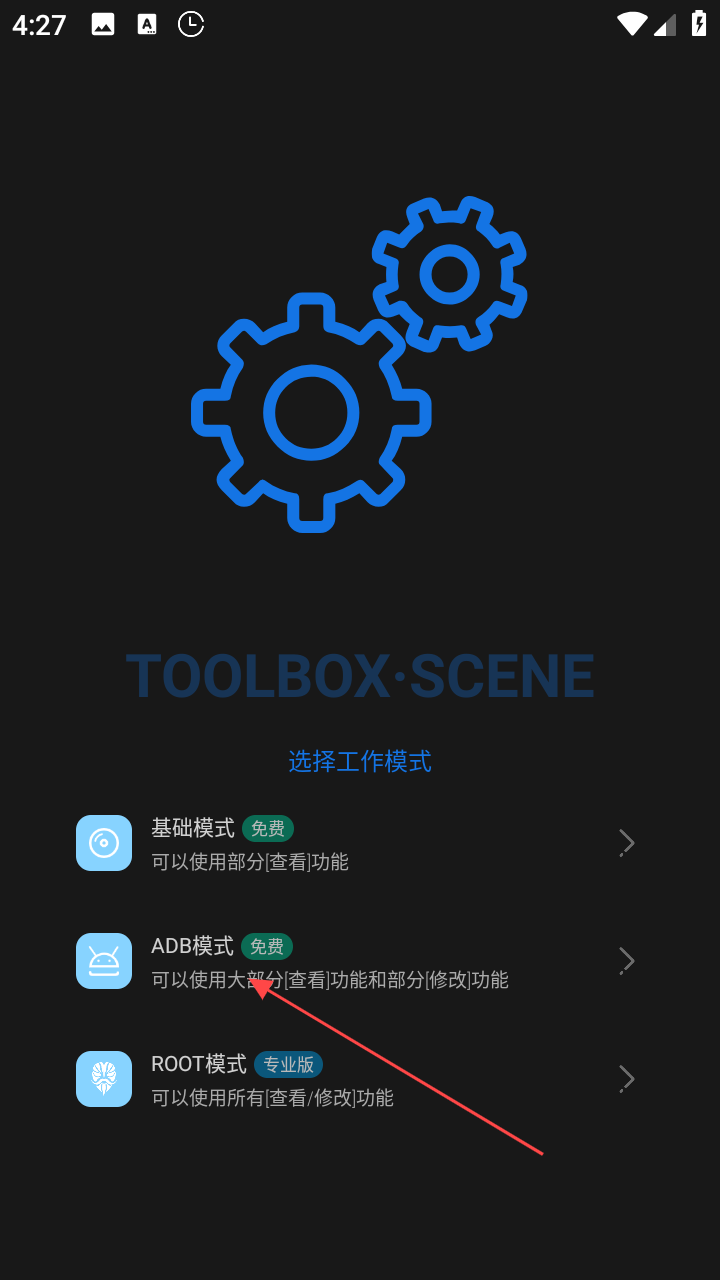 1、打開Scene軟件,在主界面點擊ADB模式選項,進(jìn)入ADB模式激活相關(guān)界面。