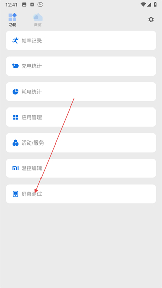 2、在功能列表中,點擊屏幕測試選項。