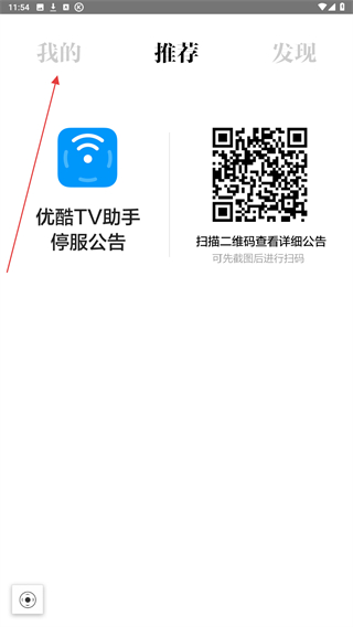 1、打開優(yōu)酷t(yī)v助手APP,進(jìn)入首頁點(diǎn)擊左上角我的圖標(biāo)。